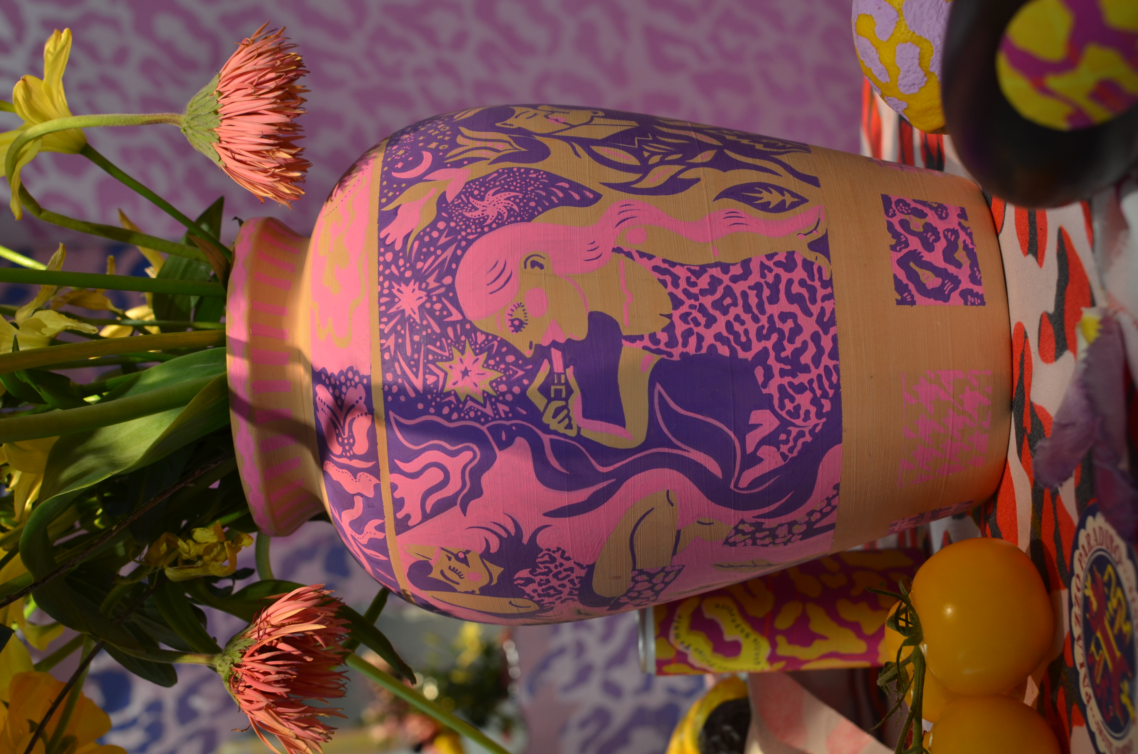 A fictional restaurant called “Palazzo Paradiso”. Leopard print, houndstooth and tartan patterns are juxtaposed in a conceptual excavation of the capitalist archeology. What desires are we shaping, and are in turn shaped by?