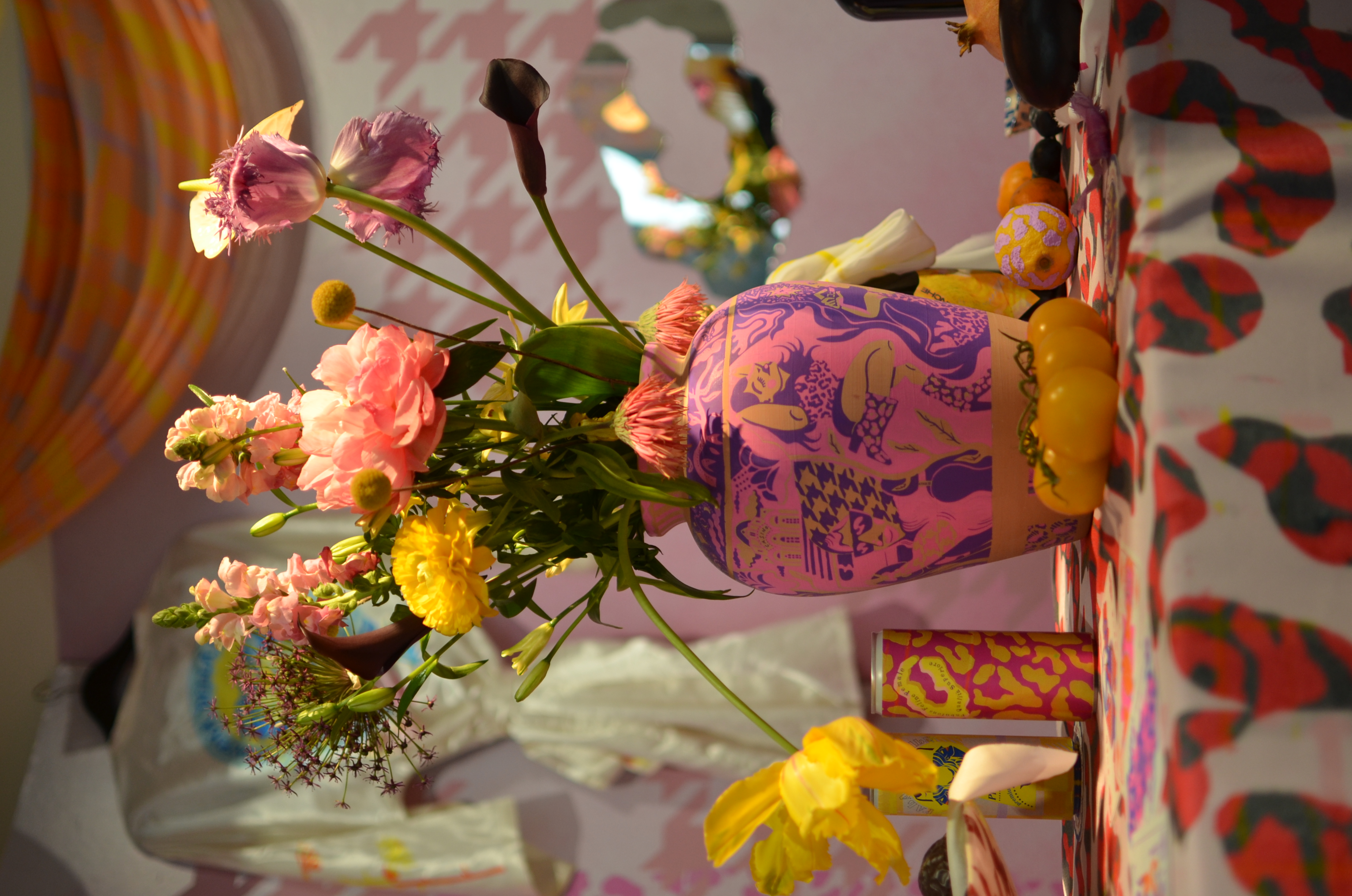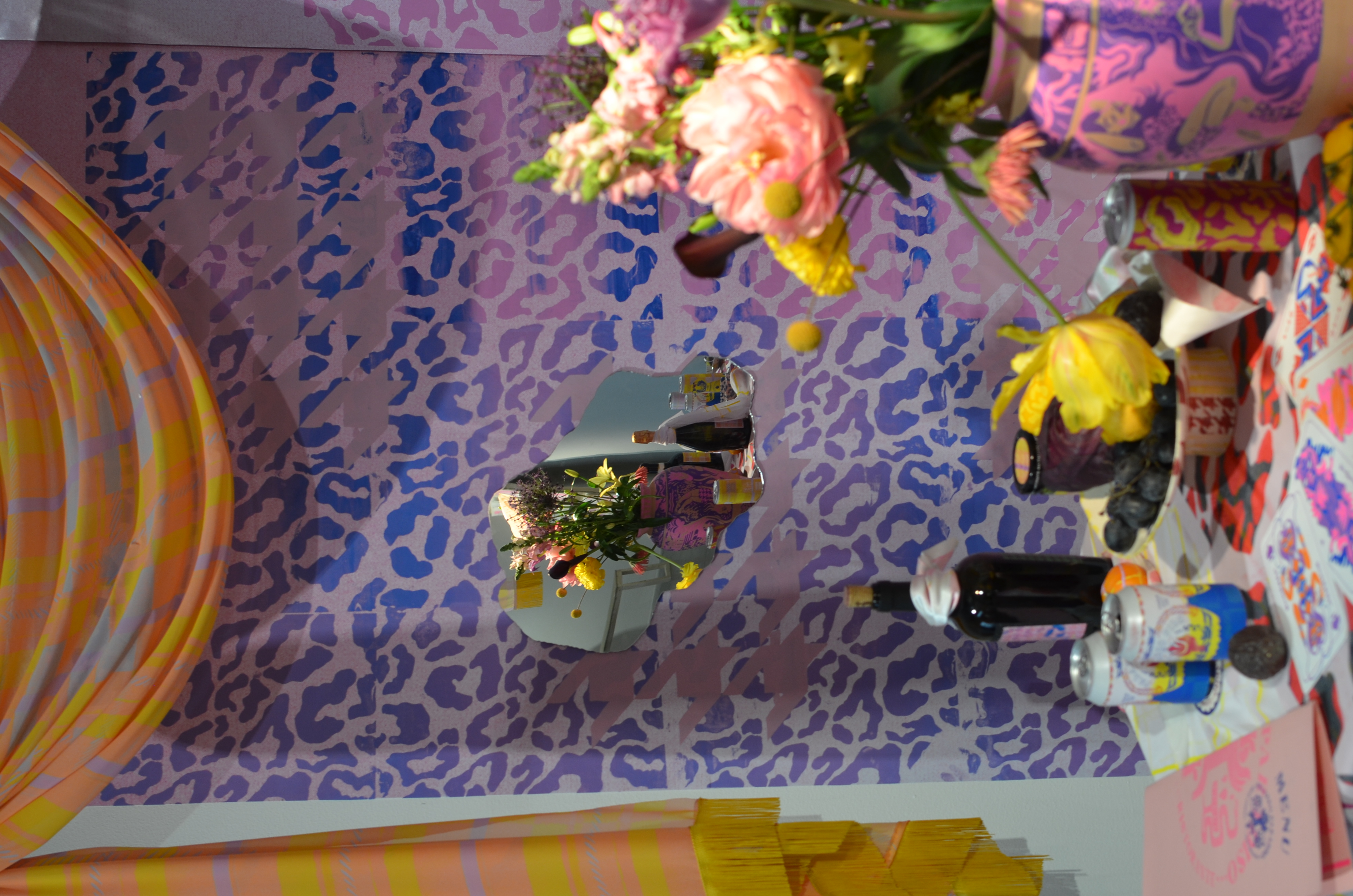 Still life Installation using printed fabrics, wallpaper and mixed artefacts.