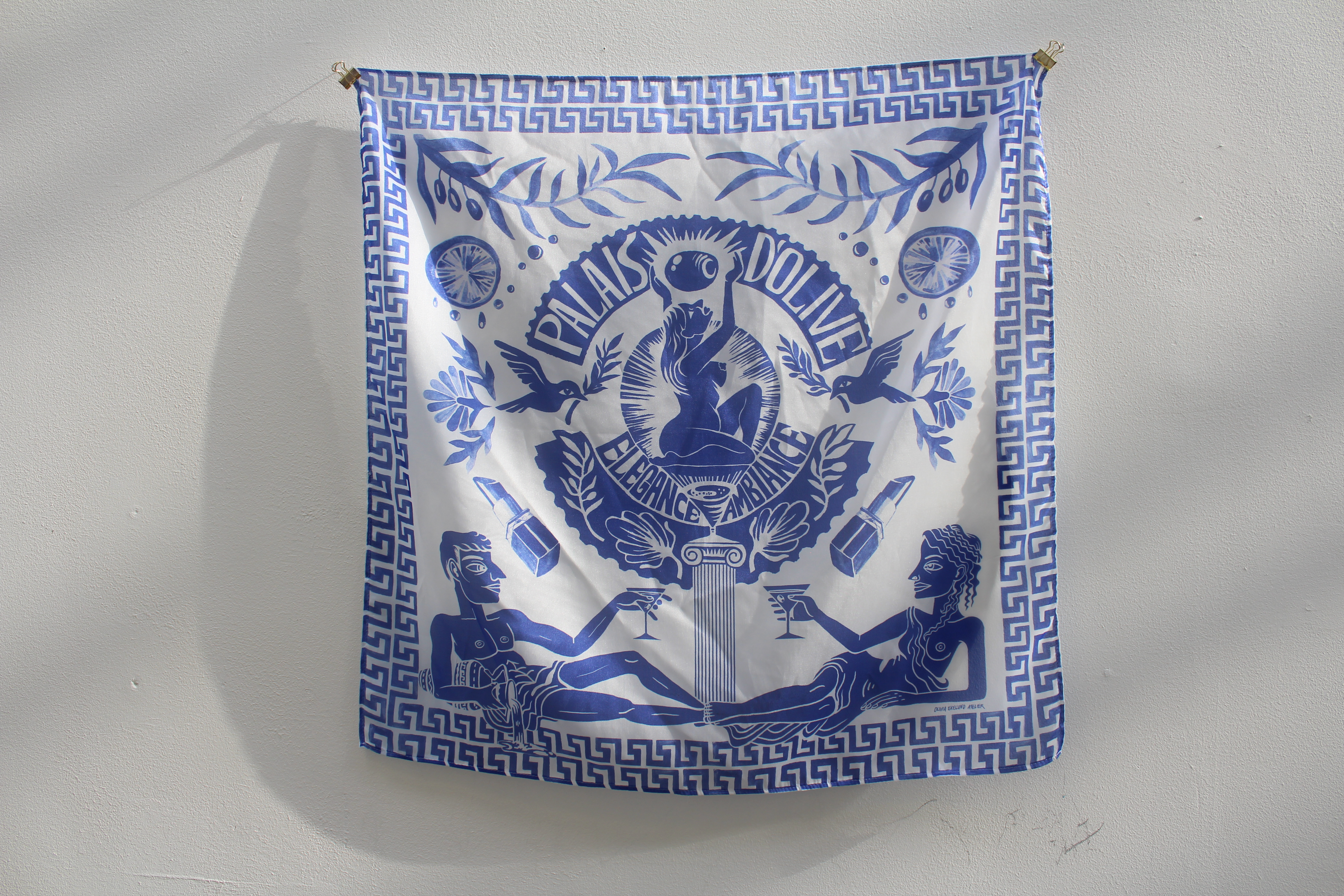 Gouache, linocut, photoshop, sublime printed on polyester satin.